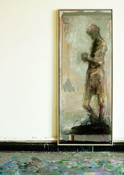 rechts: INNEN-AUSSEN, 2019, Öl auf Leinwand , 170 x 65 cm